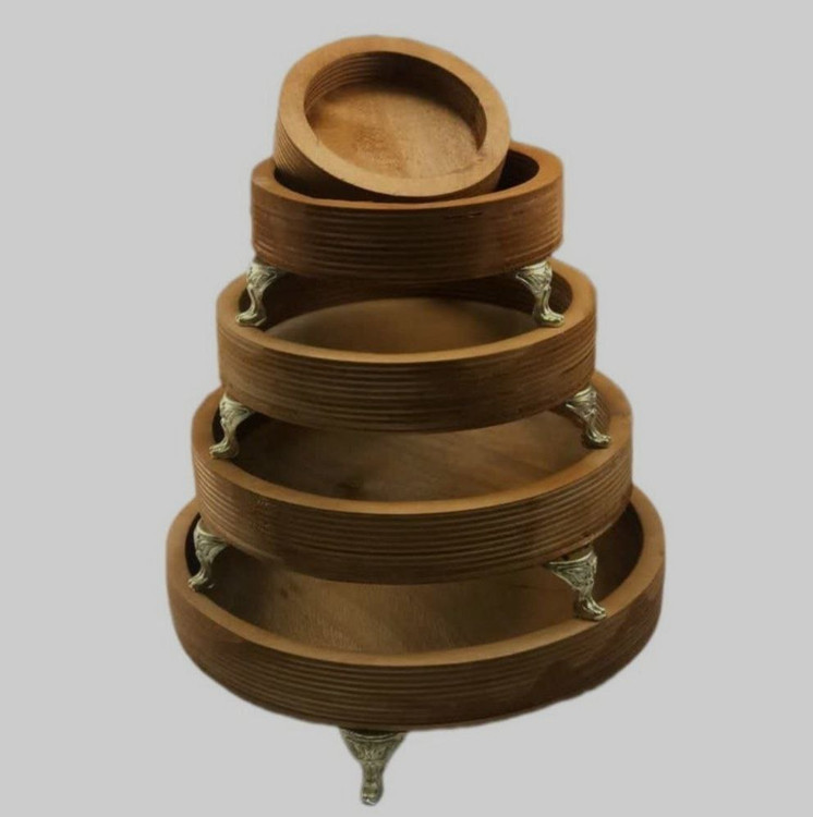این مجموعه تنقلاتخوری با طراحی دایرهای و ترکیب چوب طبیعی و پایههای فلزی، انتخابی زیبا و کاربردی برای سرو انواع خوراکیها، شیرینی، آجیل و میوه خشک است. ظاهر مینیمال و بافت چوبی گرم، در کنار پایههای فلزی مقاوم، جلوهای مدرن و دکوراتیو به میز پذیرایی شما میبخشد.