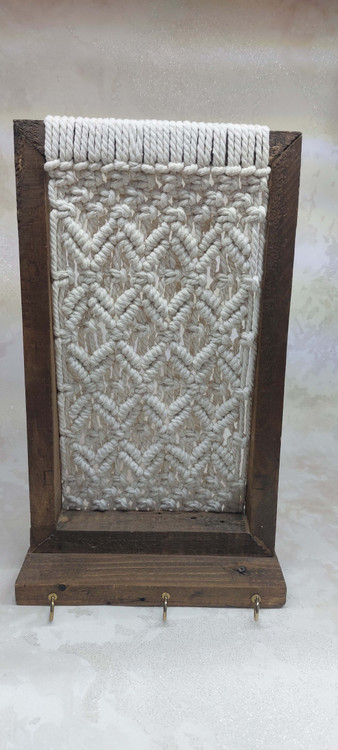 جا کلیدی مکرومه با قاب چوبی دستساز