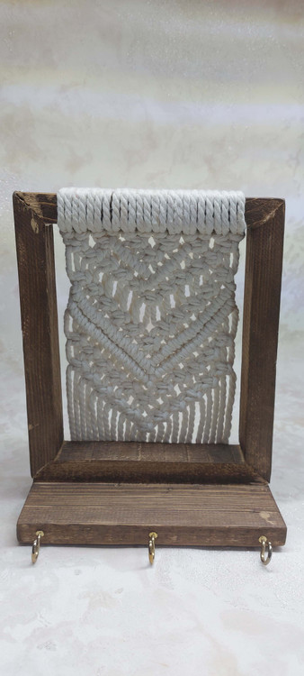 جا کلیدی مکرومه با قاب چوبی دستساز