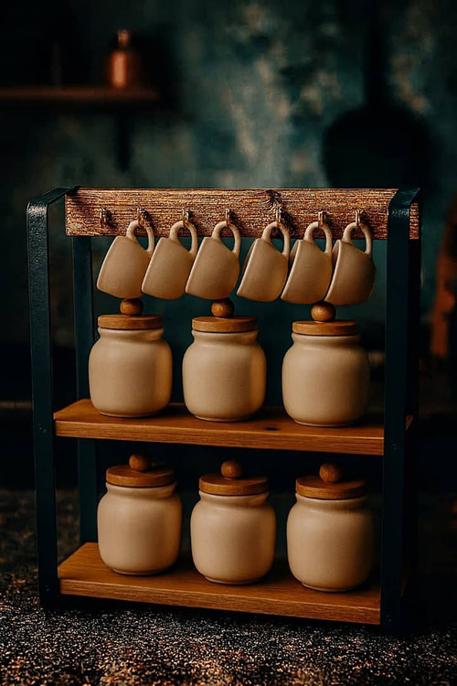 این استند دو طبقه با آویز لیوان، انتخابی کاربردی و زیبا برای نظمدهی به فضای آشپزخانه است. ترکیب چوب و فلز، جلوهای خاص و حرفهای به محیط میبخشد و با طراحی چندمنظوره، هم برای نگهداری ظروف و هم برای نمایش لیوانها کاملاً مناسب است.