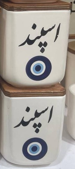 طرح: نقش چشمنظر و نوشته فارسی «اسپند» با الهام از فرهنگ ایرانی