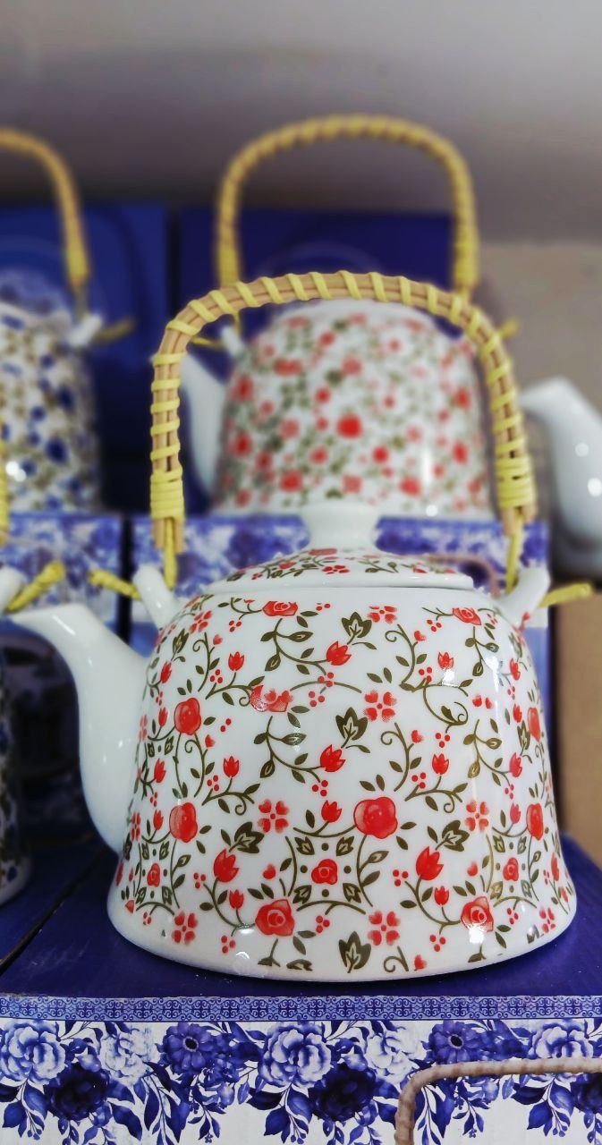 قوری چینی با طراحی سنتی و نقوش گلدار، انتخابی زیبا و کاربردی برای دمکردن انواع چای و دمنوش است. دستهی بامبو با بافت طبیعی، علاوه بر زیبایی، حس اصالت و گرما را به محصول میبخشد.