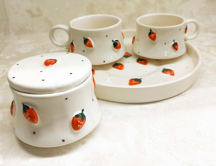 طرح توتفرنگی با رنگهای قرمز و سبز ملایم، حس طبیعت و تازگی را به چیدمان شما اضافه میکند. نقاشیها با دست انجام شده و لعابکاری حرفهای، دوام و زیبایی را تضمین میکند.