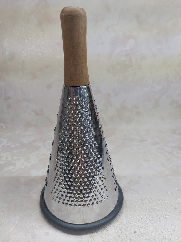 رندهای کاربردی و زیبا با طراحی مخروطی، مناسب برای آشپزخانههای مدرن و حرفهای. دارای چند سطح رنده با سوراخهای متنوع برای بافتهای مختلف، از پنیر تا سبزیجات. دسته چوبی خوشدست و پایه ضدلغزش، استفاده روزمره را راحتتر و ایمنتر میکند.