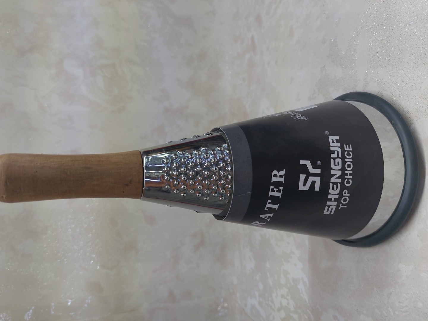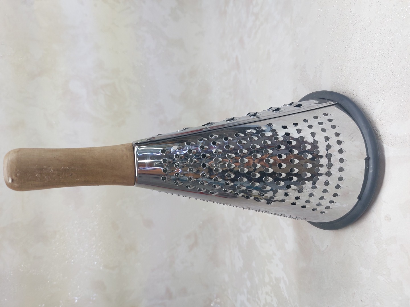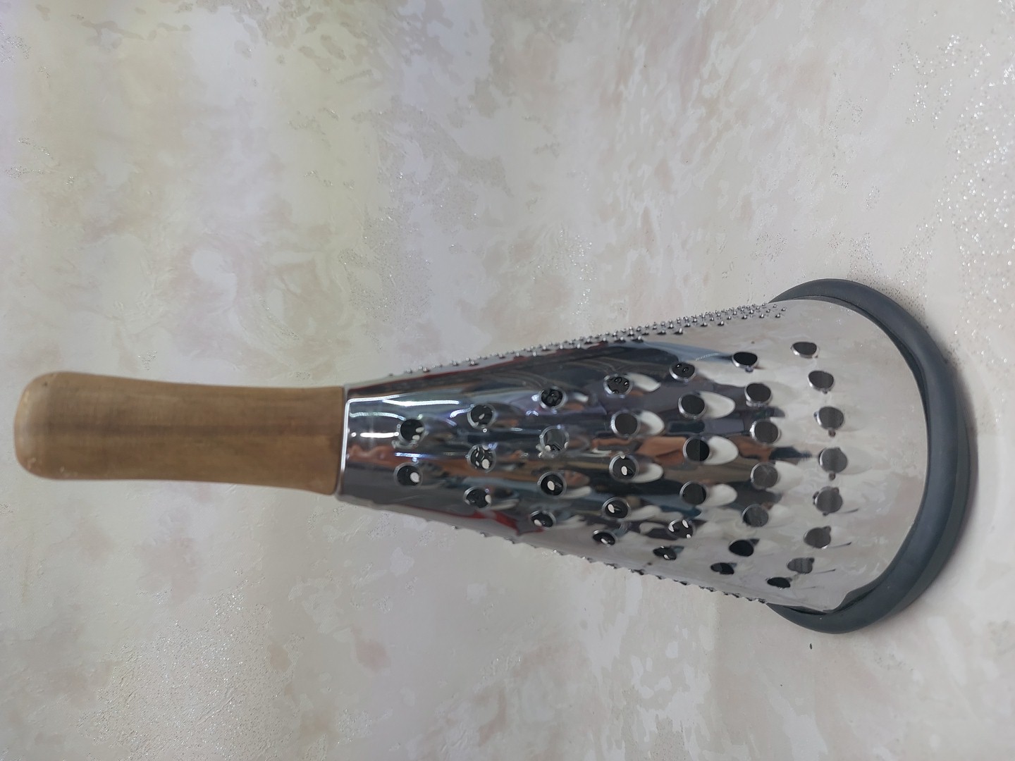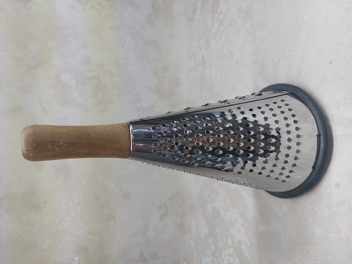 رندهای کاربردی و زیبا با طراحی مخروطی، مناسب برای آشپزخانههای مدرن و حرفهای. دارای چند سطح رنده با سوراخهای متنوع برای بافتهای مختلف، از پنیر تا سبزیجات. دسته چوبی خوشدست و پایه ضدلغزش، استفاده روزمره را راحتتر و ایمنتر میکند.