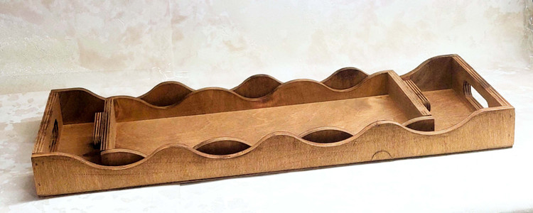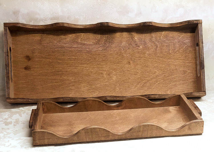 این ست دو عددی سینی چوبی با لبههای منحنی و دستههای برشخورده، ترکیبی از زیبایی سنتی و کاربرد مدرن را به میز پذیرایی شما میآورد. مناسب برای سرو نوشیدنی، شیرینی، میوه یا چیدمان دکوری.